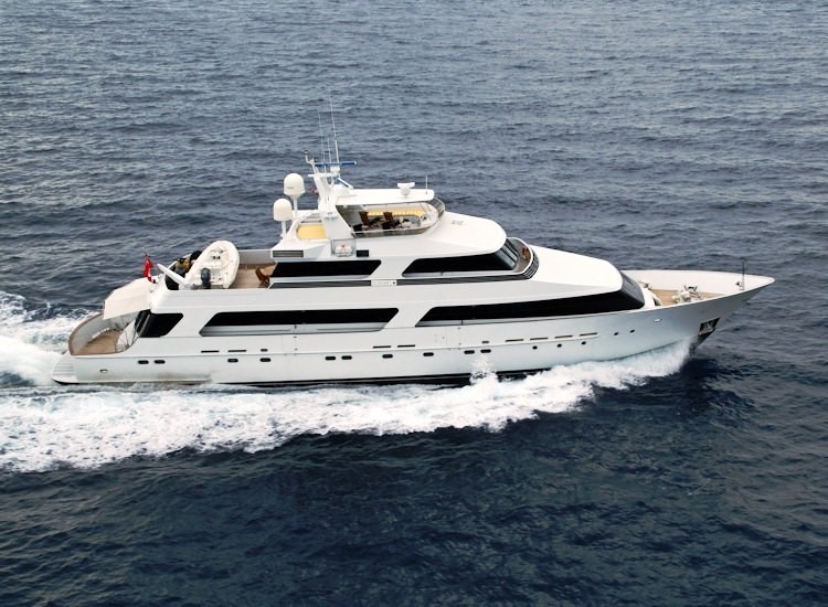 Tropic C was a custom, 36.9m aluminium tri-deck yacht with a fishing cockpit at the stern and a flying bridge. Five staterooms and four crew cabins accommodated 11 guests and 8 crew. Mulder’s first round-bilge semi-displacement yacht, her top speed was 20 knots. This was followed by 34m Wheels in 1987, Mulder’s first round bilge, semi-planning yacht.