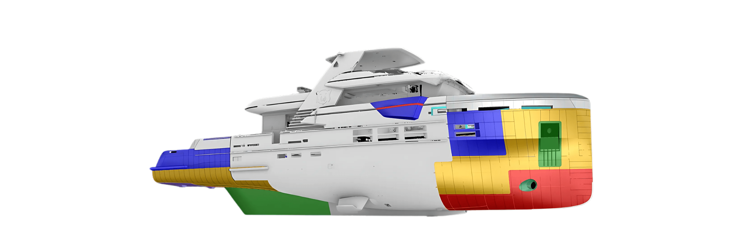Similarly, the stern shape needed to attach as far forward as possible, cutting underneath guest cabins that were temporarily suspended in mid-air. To achieve a near-perfect fit without kinks and a lot of filler the existing hull was 3D-scanned. This has become a standard for our refits, and paid off in dividends.