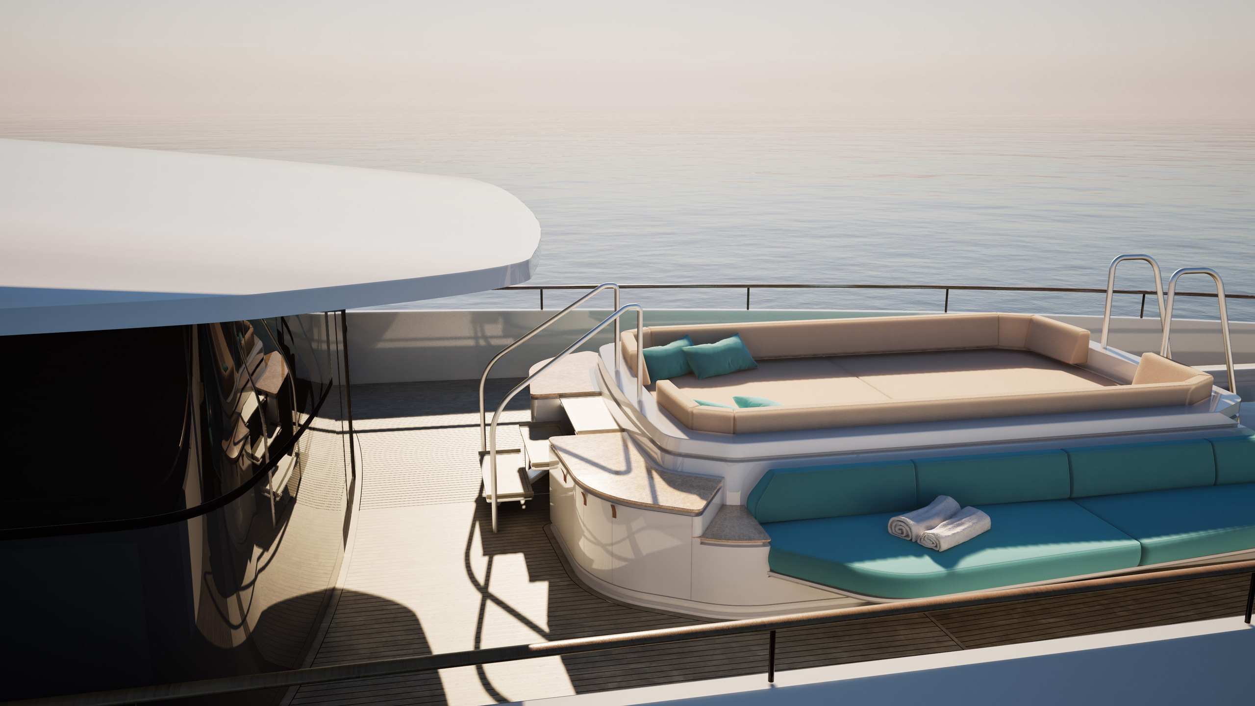 On-board entertainment reaches new heights with a striking 6.5-meter swimming pool positioned on the foredeck, perfect for leisurely laps or refreshing dips. Thoughtfully distributed seating areas across multiple levels cater to every mood – from peaceful reading nooks to convivial gathering spaces for dining and socializing under the stars.