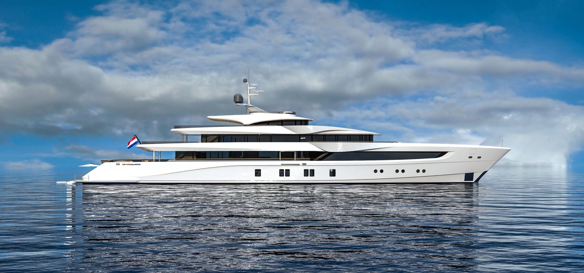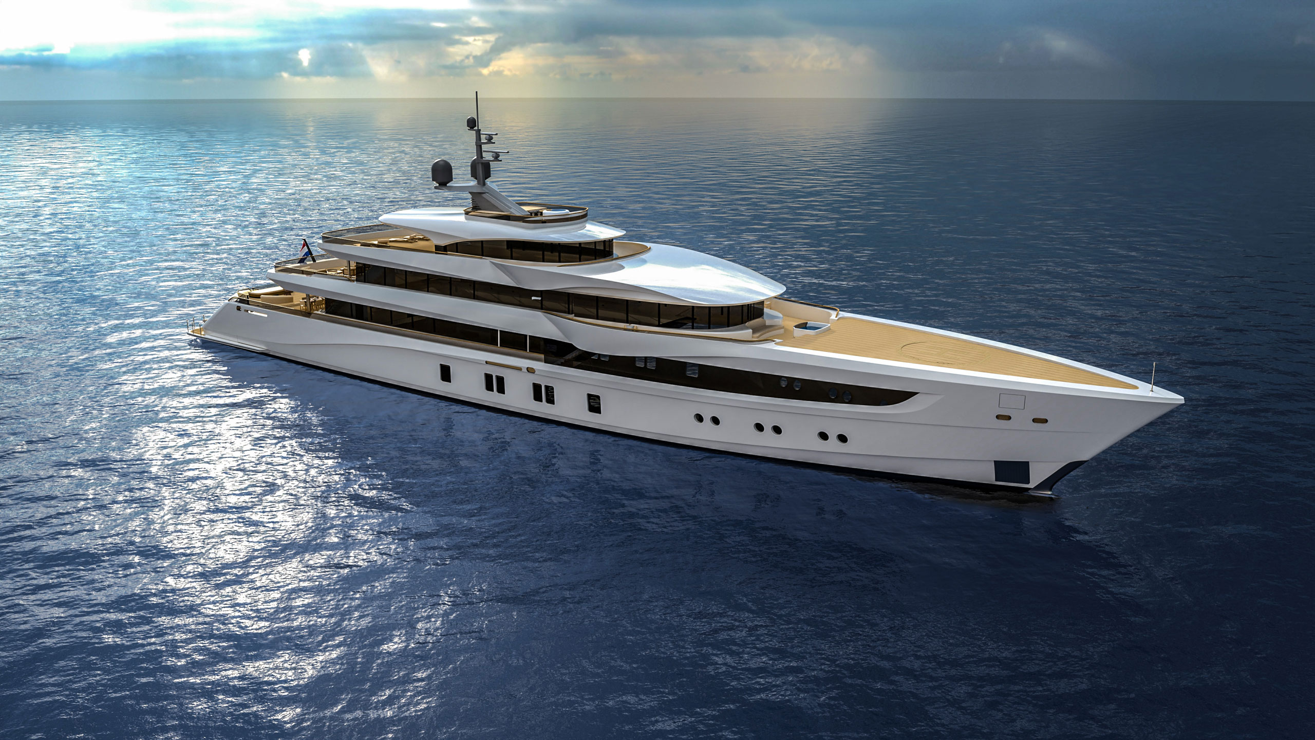 The yacht’s 70-metre LOA is coupled to a 63.4-metre waterline length and an overall beam of 13 metres. A maximum draft of 3.15 metres ensures access to popular harbours and anchorages, while the provisional interior volume in excess of 1,400 GT offers plenty of scope for exceptional interior owner and guest spaces.