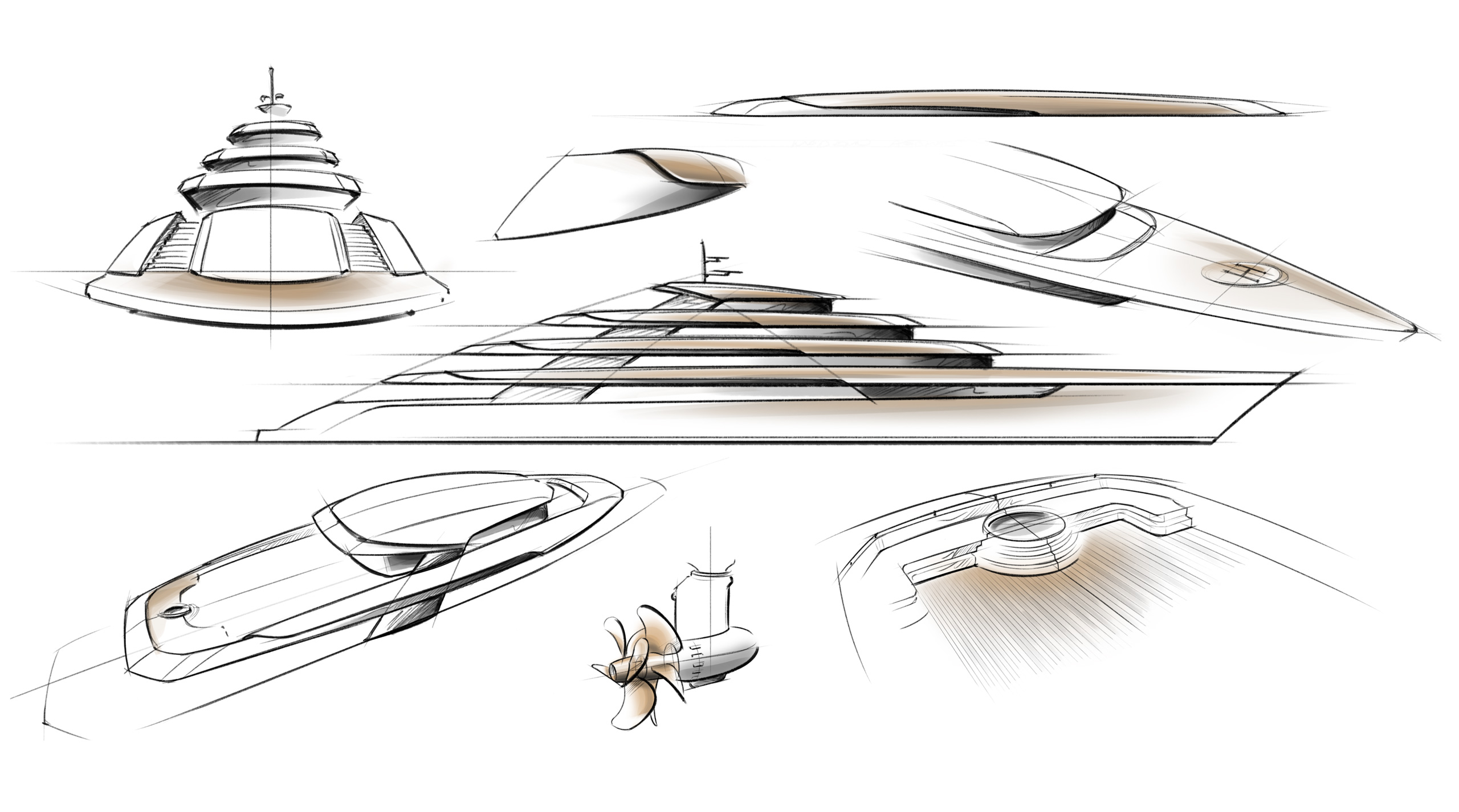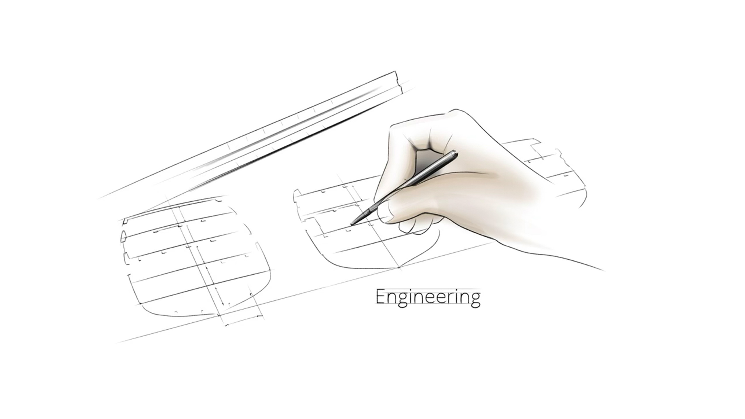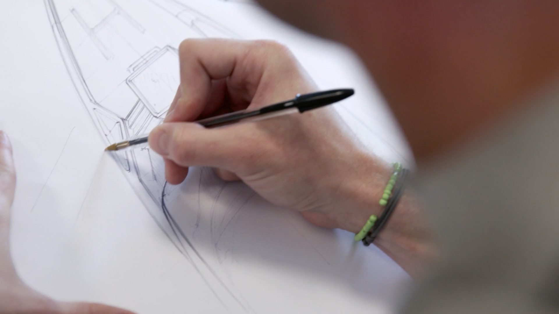 Creating an exterior design is a matter of intuition as much as anything else. It is crucial to have an intrinsic sense of power and elegance to work in our studio. Our designs reflect our vision of what makes a boat truly beautiful, combined with a thoughtful understanding of each client’s aesthetic preferences.