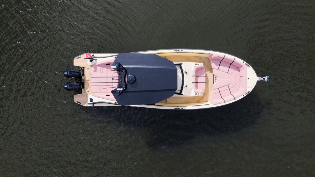 Aluminum construction presented specific considerations. Weight distribution becomes critical in a vessel designed to accommodate fourteen people and multiple propulsion configurations. Mulder Design developed a structure maintaining rigidity while keeping displacement low enough to achieve performance targets, whether equipped with twin Yanmar inboards or triple Mercury outboards.
