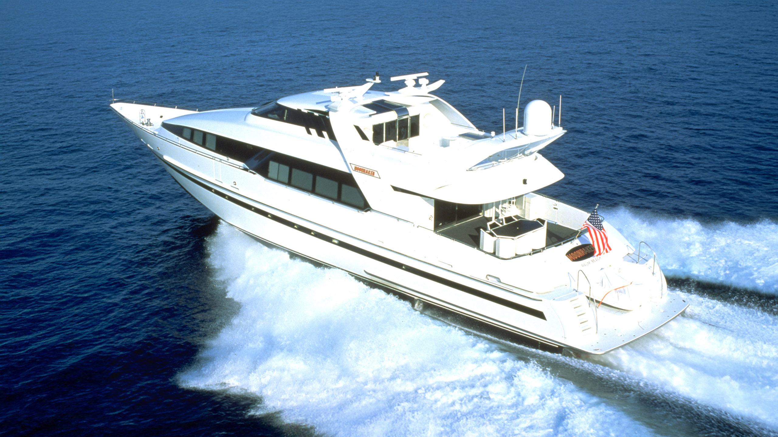 Her unique trim tab system represents another technological breakthrough, delivering dramatic performance improvements and fuel efficiency across her entire speed range while providing automatic stabilization. Remarkably, even at high speeds, Moonraker delivers a quieter and smoother ride than most conventional displacement-speed yachts.
