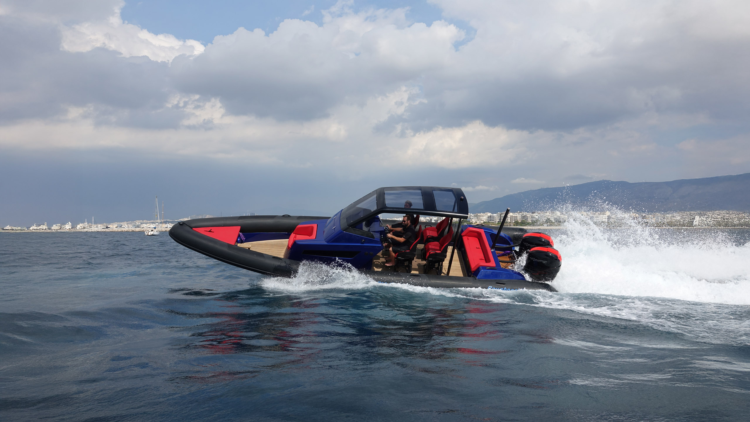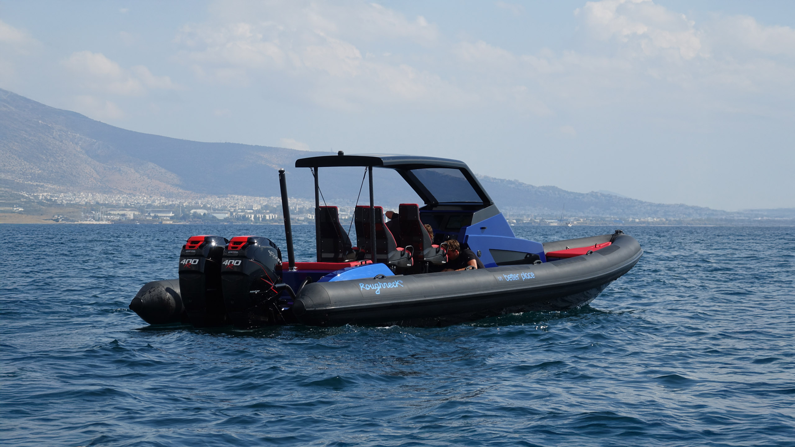 The Roughneck 1010 (Project P1058), designed by Mulder Design with naval architecture by Mulder and built by Roughneck Marine, is a high-performance 10.25 m (33’8″) rigid inflatable boat launched in 2016. Featuring composite sandwich construction, this versatile RIB can be equipped with engines of up to 700 HP, reaching speeds of up to 65 knots while maintaining CE classification.