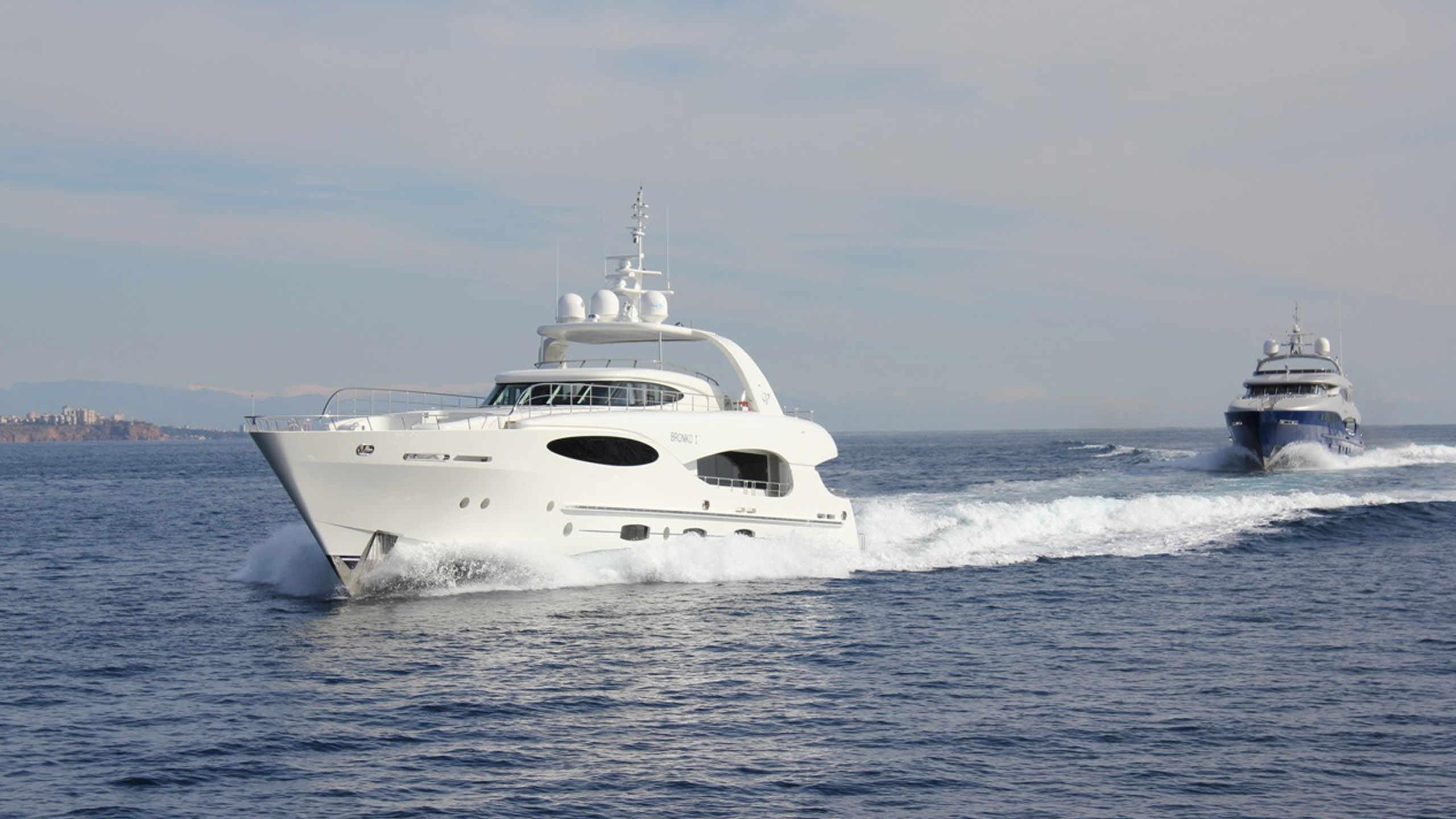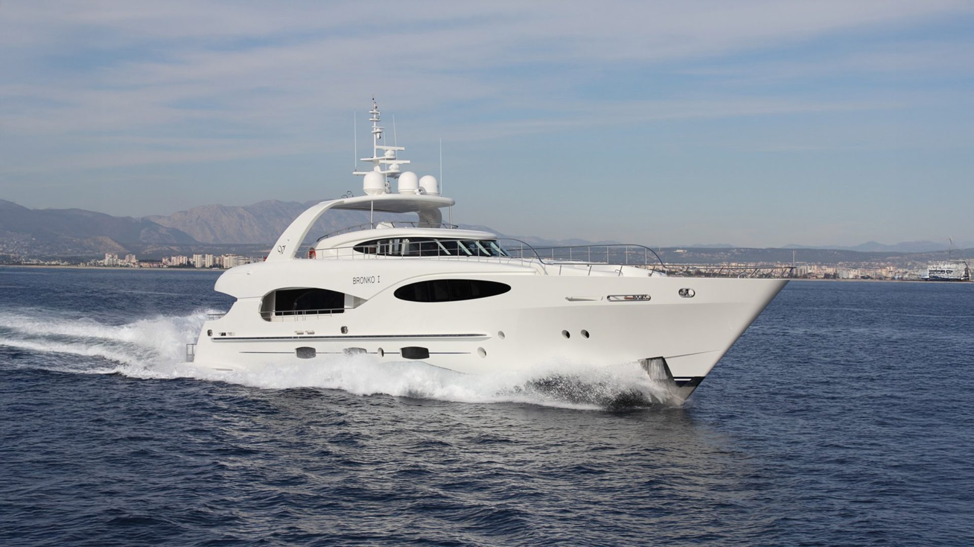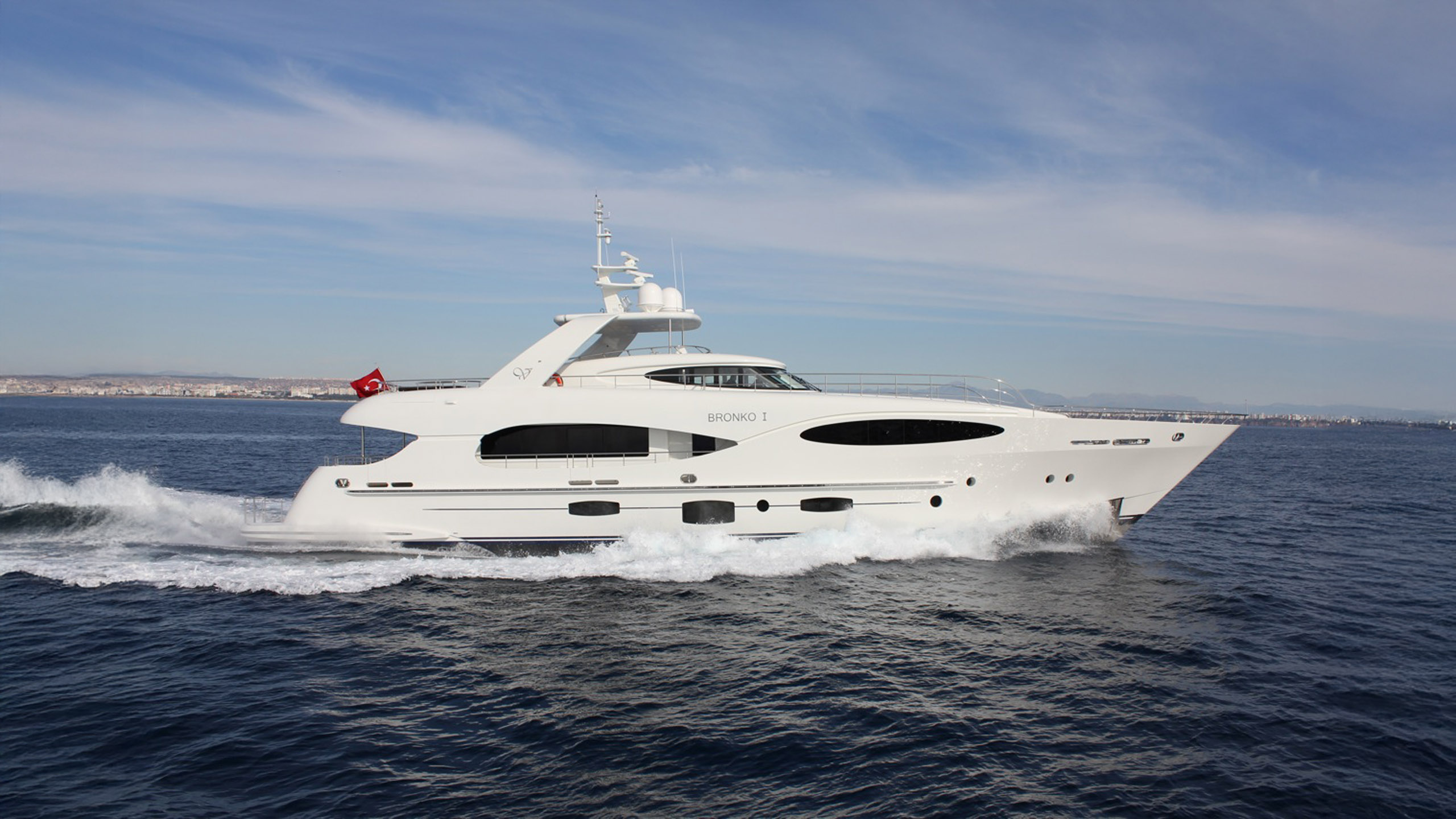 Constructed using advanced Corecell Sandwich technology, Bronko I delivers strong performance through twin Caterpillar C32 Acert engines producing 1,900 horsepower each. This configuration enables a maximum speed of 23 knots and a comfortable cruising speed of 19 knots.